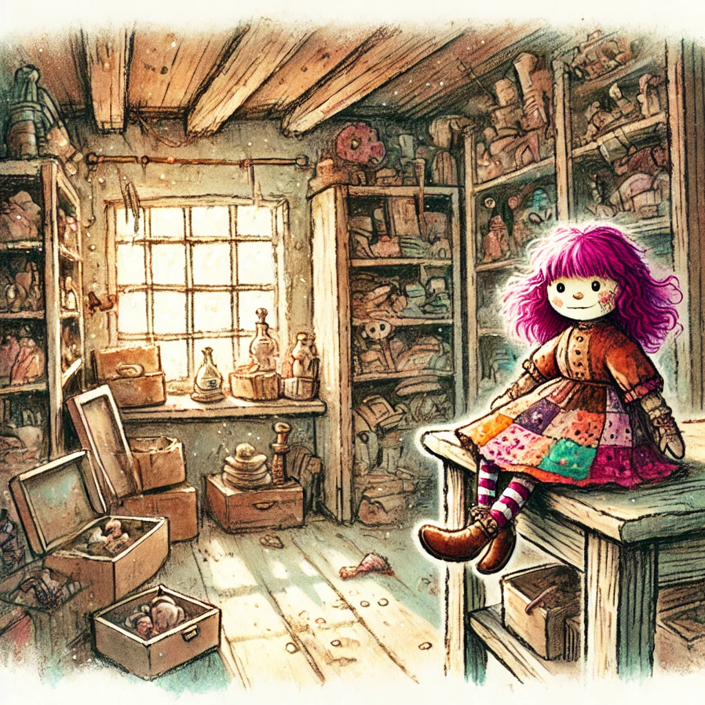 As the echoes of combat faded, they discovered a hidden staircase leading to the manor’s attic. Ascending into the cramped space, they found themselves surrounded by the detritus of forgotten treasures and oddities. Among the clutter, they spied Sassy Sally Jane, her vibrant pink hair and patchwork dress unmistakable. A Mage Hand confirmed her identity with a cheeky retort, much to their amusement and relief.